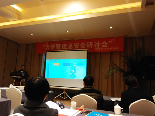 12月5日,由铜陵市计算机协会主办,北京天融信公司、天津中科蓝鲸公司、成都科来软件公司协办的“云智慧信息安全研讨会”在铜雀台召开,我公司负责人参加。